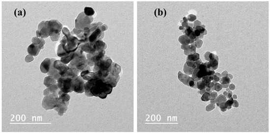 The average size and particle distribution were visualized using TEM micrographs; the ZnO nanosphere appears not uniform and aggregated together, and the surface is not homogeneous. These observations agree with that recently reported by Hessien [46]. Mg-doped ZnO showed smaller nanosphere diameters (~23 nm), with high density attributed to the large surface area. As demonstrated, some of the particles possess a tiny spherical shape of ~ 12   n m that is in agreement with previous studies [46,47]. Moreover, as recently mentioned, the presence of Mg ions prevents the aggregation of particles, in addition to size reduction, which indicates the high density on the surface and high chemical reactivity of Mg-doped ZnO [41,48].