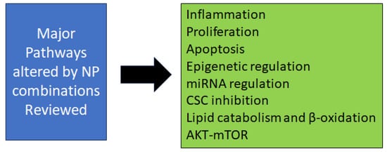 The major pathways and mechanisms altered by natural product combinations examined in this review.