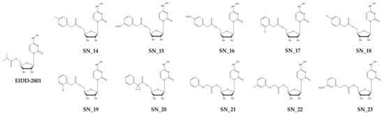 Nucleoside analogues (NAs) play an important role in the treatment of viral respiratory diseases, especially during the current COVID-19 pandemic. Among them are remdesivir, molnupiravir, azvudine and bemnifosbuvir, which have been approved or are being investigated in clinical trials for the treatment of COVID-19 [,]. These drugs target a key component of the viral replication cycle—RNA-dependent RNA polymerase (RdRp).