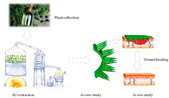 The methodological procedure strated with plant collection and EO extraction followed by in vitro and in vivo studies (Figure 9).