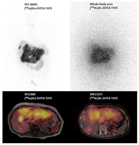 - Demirci, E.; Alan Selcuk, N.; Beydagi, G.; Ocak, M.; Toklu, T.; Akcay, K.; Kabasakal, L. Initial Findings on the Use of [225Ac]Ac-DOTATATE Therapy as a Theranostic Application in Patients with Neuroendocrine Tumors. Mol. Imaging Radionucl. Ther. 2023, 32, 226–232. [Google Scholar] [CrossRef]