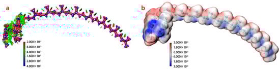 Molecular simulation of bonding in Menthol-CoQ10 ionic liquids, weak interaction (a) and electrostatic potential (b).