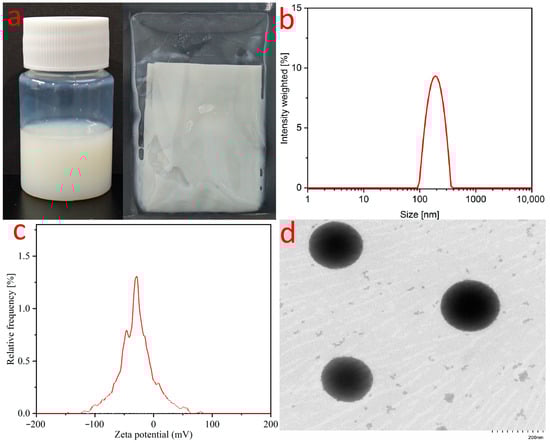 GSO-ILE appearance (a), particle size (b), zeta potential (c), and TEM view (d).