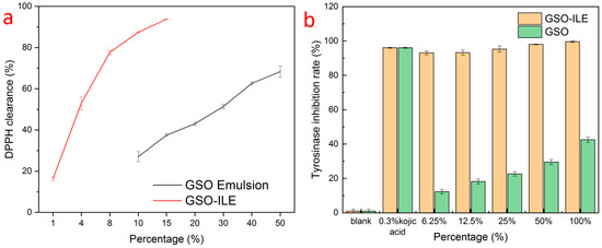 (a) DPPH free radical scavenging rate and (b) tyrosinase inhibition rate of GSO-ILE.