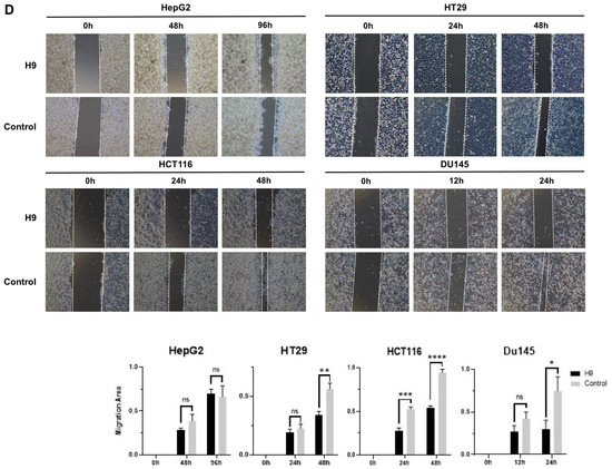 2.2. Selected H9 Antibody Inhibits Proliferation and Migration of Four Cancer Cell Lines