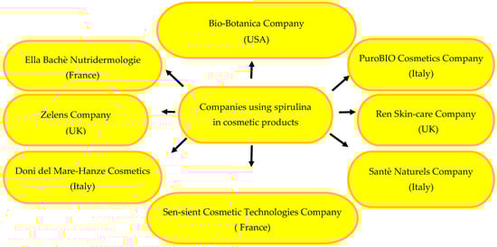 Currently, there is an increasing demand for natural skin photoprotectants against ultraviolet radiation (UVB), which causes various skin problems: changes in pigmentation, sunburn, photoaging, and cancer [176]. Spirulina has photoprotective and antioxidant properties; when added to sunscreens, it removes free radicals generated as a result of radiation, thereby increasing the level of photoprotection [177].