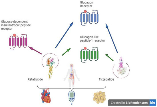 - Doggrell, S.A. Is retatrutide (LY3437943), a GLP-1, GIP, and glucagon receptor agonist a step forward in the treatment of diabetes and obesity? Expert. Opin. Investig. Drugs 2023, 32, 355–359. [Google Scholar] [CrossRef] [PubMed]
