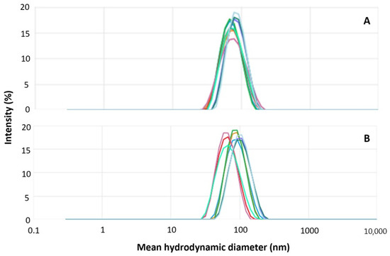 The long-term colloidal stability of the HNP-siHOXB7 kept at 4 °C was evaluated at different time points after preparation (0, 15, 30, 90, and 180 days) by mean hydrodynamic diameter and polydispersity index, as described in Section 4.3.