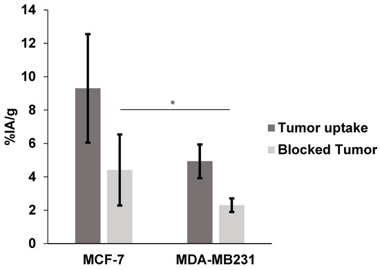 2.4. Biodistribution in Nude Mice Bearing MCF-7 and MDA-MB231 Human Breast Cancer Xenografts
