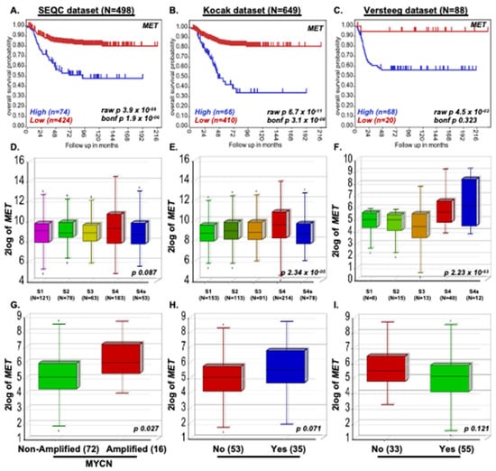 - Hecht, M.; Papoutsi, M.; Tran, H.D.; Wilting, J.; Schweigerer, L. Hepatocyte growth factor/c-Met signaling promotes the progression of experimental human neuroblastomas. Cancer Res. 2004, 64, 6109–6118. [Google Scholar] [CrossRef]