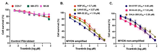 2.2. Tivantinib Inhibits NB Cell Proliferation