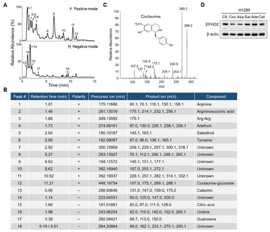 APA StyleHu, S.-Y., Lin, T.-H., Chen, C.-Y., He, Y.-H., Huang, W.-C., Hsieh, C.-Y., Chen, Y.-H., & Chang, W.-C. (2024). Stephania tetrandra and Its Active Compound Coclaurine Sensitize NSCLC Cells to Cisplatin through EFHD2 Inhibition. Pharmaceuticals, 17(10), 1356. https://doi.org/10.3390/ph17101356