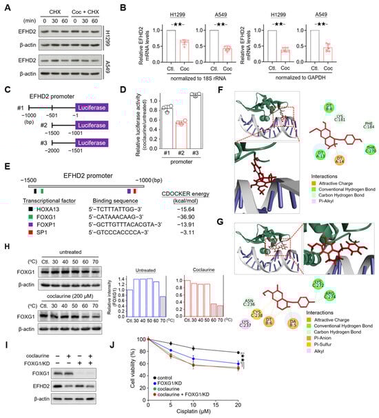 2.6. Coclaurine Suppresses EFHD2 Via Inhibiting Transcriptional Activity of FOXG1