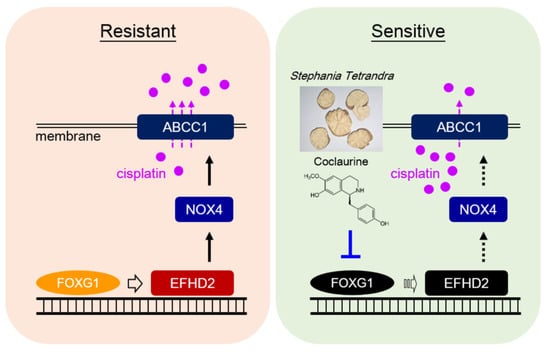 - Fan, C.C.; Tsai, S.T.; Lin, C.Y.; Chang, L.C.; Yang, J.C.; Chen, G.Y.; Sher, Y.P.; Wang, S.C.; Hsiao, M.; Chang, W.C. EFHD2 contributes to non-small cell lung cancer cisplatin resistance by the activation of NOX4-ROS-ABCC1 axis. Redox Biol. 2020, 34, 101571. [Google Scholar] [CrossRef] [PubMed]