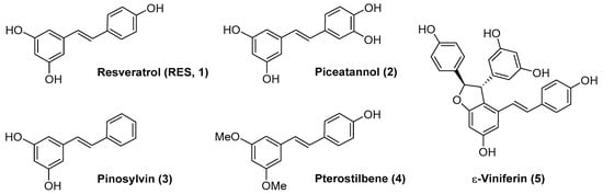 - Li, Q.-S.; Li, Y.; Deora, G.S.; Ruan, B.-F. Derivatives and Analogues of Resveratrol: Recent Advances in Structural Modification. Mini Rev. Med. Chem. 2019, 19, 809–825. [Google Scholar] [CrossRef] [PubMed]