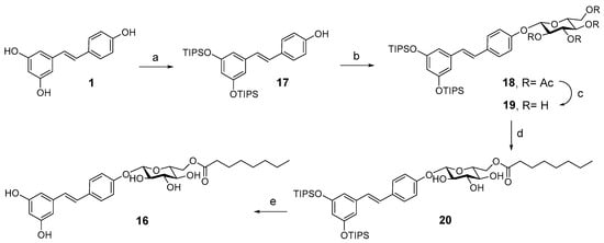 - 4′-O-(6′-O-octanoyl)-β-D-glucopyranosyl resveratrol (16)