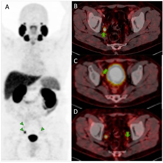 - Lima, M.; Camacho, M.; Carvalheira, J.B.C.; Biggi, A.; de Lima, M.L.; Ciampi, J.; Salis, F.; Silveira, M.B.; Ferreira, U.; Etchebehere, E. The current role of PET/CT in urological malignancies. Clin. Transl. Imaging 2020, 8, 313–347. [Google Scholar] [CrossRef]