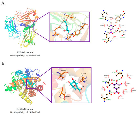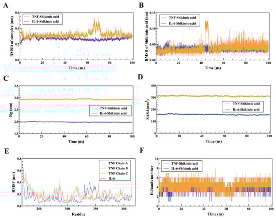 2.3.1. Stability of TNF-Shikimic Acid and IL-6-Shikimic Acid Complexes