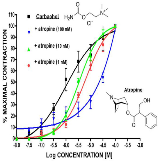 - Masuda, H.; Goto, M.; Tamaoki, S.; Kamikawatoko, S.; Tokoro, T.; Azuma, H. M3-type muscarinic receptors predominantly mediate neurogenic quick contraction of bovine ciliary muscle. Gen. Pharmacol. 1998, 30, 579–584. [Google Scholar] [CrossRef] [PubMed]