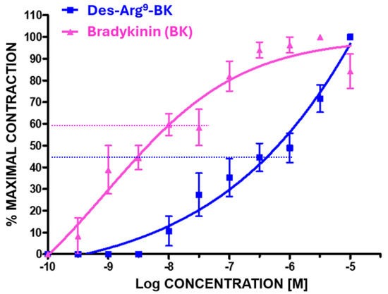 | Des-Arg9-BK | B1 > B2 | 0.06 ± 0.01 | 30 ± 1.9 nM | 3000 ± 72.0 nM |