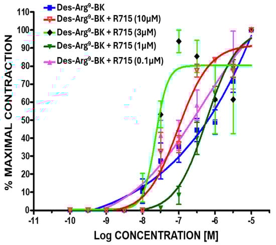 - Meini, S.; Lecci, A.; Maggi, C.A. The longitudinal muscle of rat ileum as a sensitive monoreceptor assay for bradykinin B1 receptors. Br. J. Pharmacol. 1996, 117, 1619–1624. [Google Scholar] [CrossRef][Green Version]