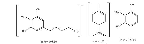 - Berman, P.; Futoran, K.; Lewitus, G.M.; Mukha, D.; Benami, M.; Shlomi, T.; Meiri, D. A new ESI-LC/MS approach for comprehensive metabolic profiling of phytocannabinoids in Cannabis. Sci. Rep. 2018, 8, 14280. [Google Scholar] [CrossRef]