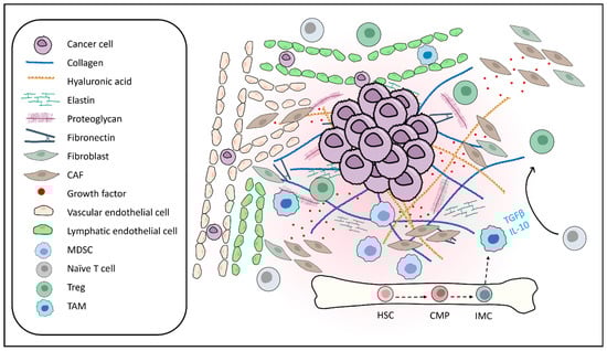 The tumor microenvironment (TME) represents a complex and dynamic ecosystem that plays a crucial role in cancer progression, metastasis, and resistance to therapy. Comprised of cancer cells and diverse stromal components—including the extracellular matrix (ECM), cancer-associated fibroblasts (CAFs), vascular and lymphatic networks, and immunosuppressive immune cells—the TME orchestrates a supportive niche for tumor development.