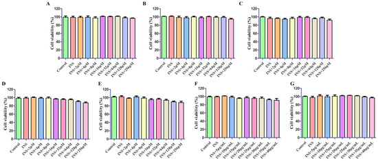 Cell viability in IR-HepG2 cells induced by INS. Puerarin (A), formononetin (B), tuberosin (C), Daidzein-4,7-diglucoside (D), 4′,7-dihdroxy-3′-methoxyisoflavone (E), P. lobata extract (F), and active constituent (G).