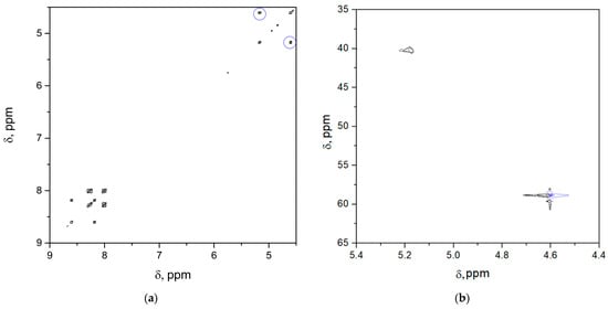 Molecular formulae were additionally confirmed by HR-ESI-MS, using the coincidence of theoretical and experimental exact masses and relative abundances for all isotopes in isotopic distributions (see Figure S1 in the Supplementary Materials).