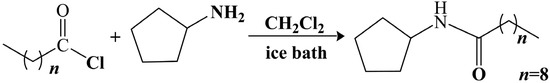Reactants and solvents used were the following: cyclopentylamine, decanoyl chloride, dichloromethane, ethylacetate, petroleum ether, dimethyl sulfoxide (DMSO), and dimethyl sulfoxide-D6. They were purchased from Shanghai MΛCLIN Biochemistry Co. (Shanghai, China) Solvents and chemical reagents were purchased and used without purification.