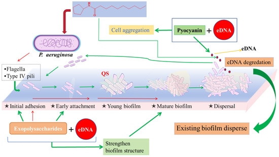 - Sarkar, S. Release mechanisms and molecular interactions of Pseudomonas aeruginosa extracellular DNA. Appl. Microbiol. Biotechnol. 2020, 104, 6549–6564. [Google Scholar] [CrossRef]