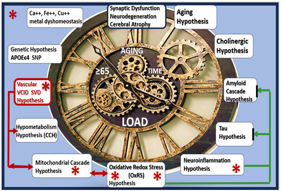 Recently, the author has proposed that there exists a dementia quartet consisting of (1). oxidative-redox stress (OxRS); (2). neuroinflammatory; (3). neurovascular; (4). neurodegenerative mechanisms that associate with small vessel disease (SVD) that are present in LOAD (Figure 2) [10].