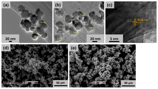 The synthesis of MnO2 NPs and ZnO-MnO2 NPs was carried out through an eco-friendly, facile and straightforward co-precipitation procedure, with calcination at 400 °C in a muffle furnace to obtain the desired NPs. The crystallinity, composition, and morphology of fabricated NPs were assessed using XRD, TGA, FT-IR, EDX, SEM, and HR-TEM. The surface morphology of the fabricated NPs was studied using TEM and SEM. The representative images showed that both NPs have similar particle shapes (Figure 1). The HR-TEM images of ZnO-MnO2 NPs displayed well-defined nano-sized polycrystalline particles with evident interplanar lattice fringes of 0.26 nm that are related to the plane (2 0 1) of MnO2 NPs, whereas the morphology of the MnO2 NPs was not well defined according to the TEM images (Figure 1).