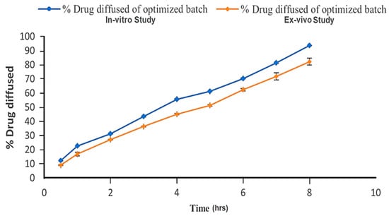 In vitro and ex vivo drug diffusion profile of optimized formulation (PG4).
