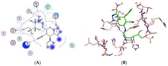 In Figure 10, HOMO is restricted to most of the atoms excluding some hydrogen and the sugar moiety atoms, while LUMO is delocalized only upon the molecule middle region. Employing the FMO essential energy gap value (Egap), the molecules’ stability toward succeeding chemical reactions is indicated. The numerical values of Egap in addition to other target molecule electronic parameters were computed (Table 3). Established upon Koopmans’ theory, the target molecule’s chemical reactivity descriptors like ionization potential (IP), chemical potential (µ), electronegativity (-χ), electron affinity (EA), global chemical hardness (դ), electrophilicity (Ѡ), and global chemical softness (S), were assessed [].