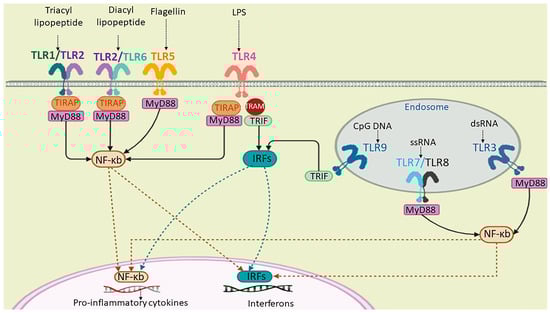 - Asami, J.; Shimizu, T. Structural and Functional Understanding of the Toll-like Receptors. Protein Sci. 2021, 30, 761–772. [Google Scholar] [CrossRef]