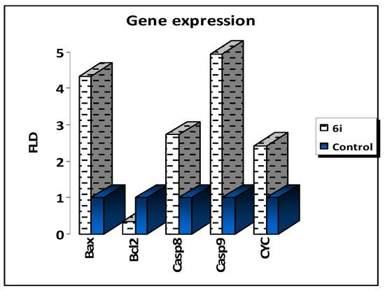 Fold change of apoptosis genes in treated MCF-7 cells with 6i.