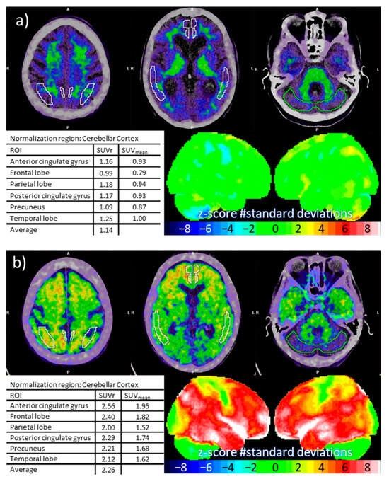 - Pemberton, H.G.; Collij, L.E.; Heeman, F.; Bollack, A.; Shekari, M.; Salvadó, G.; Alves, I.L.; Garcia, D.V.; Battle, M.; Buckley, C.; et al. Quantification of Amyloid PET for Future Clinical Use: A State-of-the-Art Review. Eur. J. Nucl. Med. Mol. Imaging 2022, 49, 3508–3528. [Google Scholar] [CrossRef] [PubMed]