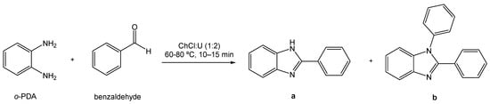 - Di Gioia, M.L.; Cassano, R.; Costanzo, P.; Herrera Cano, N.; Maiuolo, L.; Nardi, M.; Nicoletta, F.P.; Oliverio, M.; Procopio, A. Green Synthesis of Privileged Benzimidazole Scaffolds Using Active Deep Eutectic Solvent. Molecules. 2019, 24, 2885. [Google Scholar] [CrossRef]