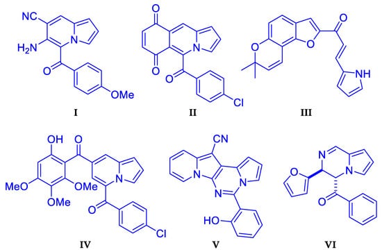 The identification of new chemical entities with pharmacologically modulating properties is important in the early stages of drug discovery processes. Accordingly, the generation of new drug-like chemical scaffolds and their derivatives for biological screening is highly desired. Against this backdrop, we were able to find several chemical motifs (I–VI) with significant pharmacological functions through the synthesis and biological evaluation of novel heterocycles (Figure 1) [1,2,3].