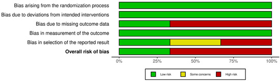 We used RoB 2.0 [55] for outcome-level risk-of-bias assessments. We did not plan any subgroup analyses by risk of bias due to a known low number of the included studies. A risk-of-bias graph and summary visualizations were created using the R package robvis version 0.3.0 [56].