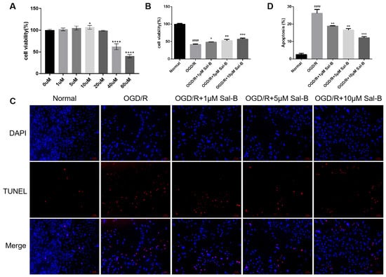 2.3. Salvianolic Acid B Can Reduce Cell Apoptosis after OGD/R
