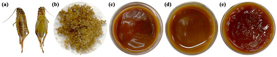 - Udomsil, N.; Imsoonthornruksa, S.; Gosalawit, C.; Ketudat-Cairns, M. Nutritional Values and Functional Properties of House Cricket (Acheta domesticus) and Field Cricket (Gryllus bimaculatus). Food Sci. Technol. Res. 2019, 25, 597–605. [Google Scholar] [CrossRef]