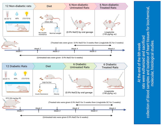- Group 4: Normal saline was administered to diabetic rats for the initial 3 weeks, and they were subsequently injected with 150 μg/kg liraglutide SC twice daily [71] for the remaining 3 weeks.