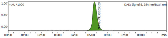 Analytical HPLC of N-methylated reference compound 2. Rt: 5.12 min. (See Supplementary Materials for further analytical information, Figure S8).