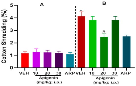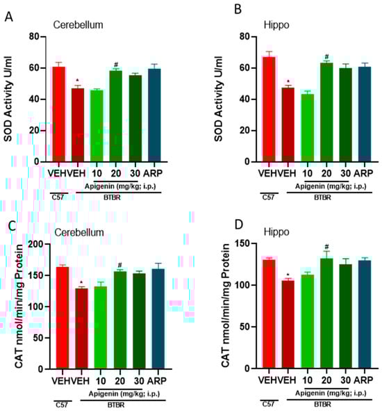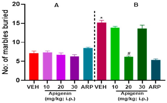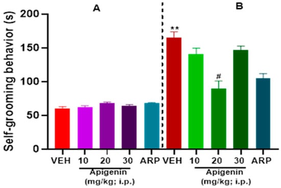 APA StyleJayaprakash, P., Isaev, D., Yang, K.-H. S., Beiram, R., Oz, M., & Sadek, B. (2024). Apigenin Alleviates Autistic-like Stereotyped Repetitive Behaviors and Mitigates Brain Oxidative Stress in Mice. Pharmaceuticals, 17(4), 482. https://doi.org/10.3390/ph17040482