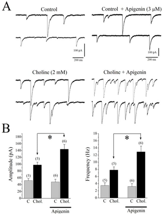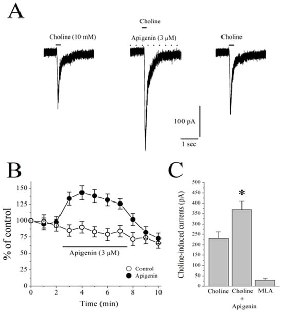 2.7. Effects of APG on Choline-Induced GABA Responses in CA1 Pyramidal Neurons of Mice Hippocampal Slices