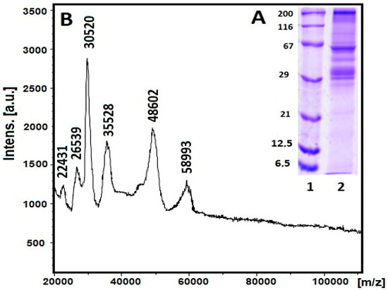 4.3. MALDI-MS Analysis of Proteins