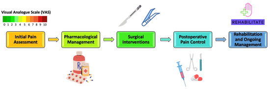 Surgical interventions can result in substantial alterations in anatomy and functionality for patients, necessitating subsequent rehabilitation and ongoing pain management [78,79]. Employing precise surgical techniques can mitigate the severity of postoperative pain [80,81]. The careful handling of tissues, utilization of nerve- and vessel-sparing procedures, avoidance of tissue ischemia, and selection of non-muscle-splitting incisions collectively contribute to minimizing surgical pain and facilitating recovery [82,83]. Immediately after the operation, a comprehensive pain-control approach may be applied [84,85].