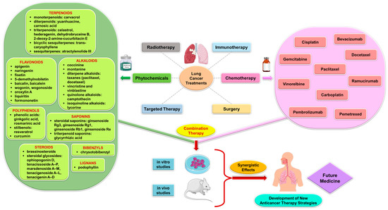 The combination of phytocompounds or plant extracts with complementary therapy is highly appreciated and used for the treatment of cancer because it offers a novel approach that can enhance the efficacy of treatment and reduce toxicity while also potentially overcoming drug resistance. By harnessing the unique properties of natural compounds and their ability to augment the effects of chemotherapeutic drugs, it could become possible to improve outcomes for lung cancer patients and pave the way for more effective and personalized treatment approaches in the future [4,119].